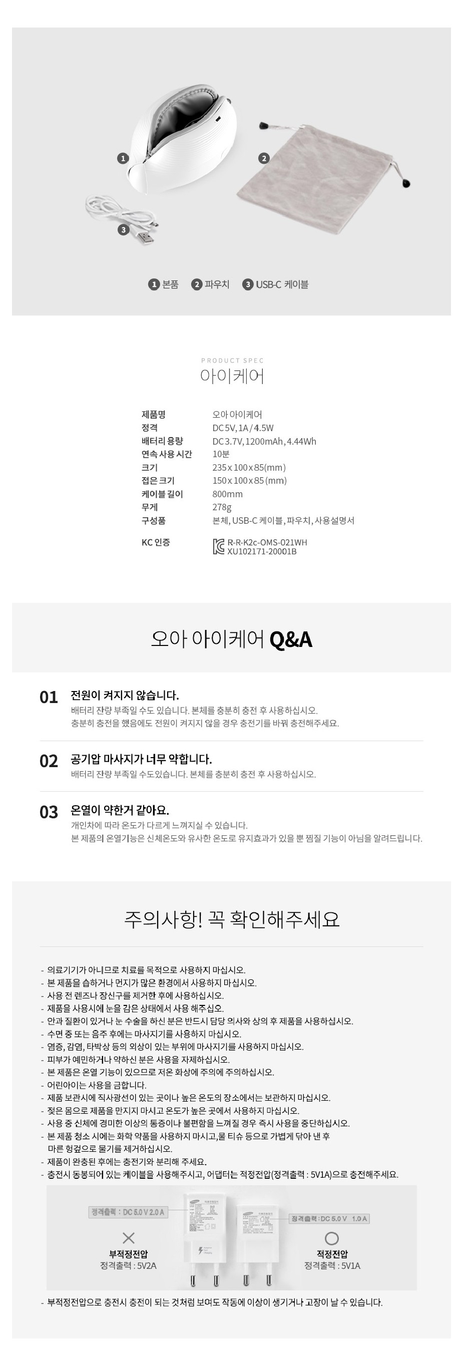 오아 아이케어 눈 마사지기