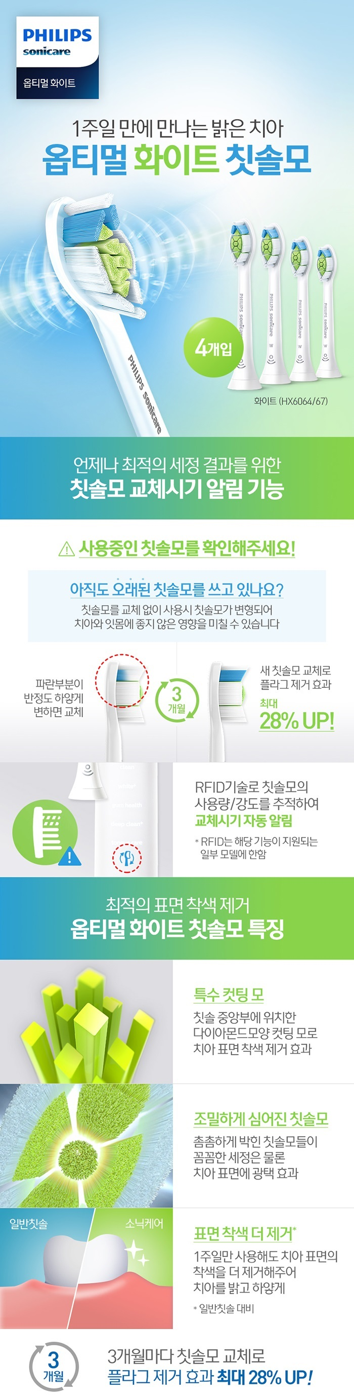 필립스 소닉케어 옵티멀 화이트 칫솔모 4개입