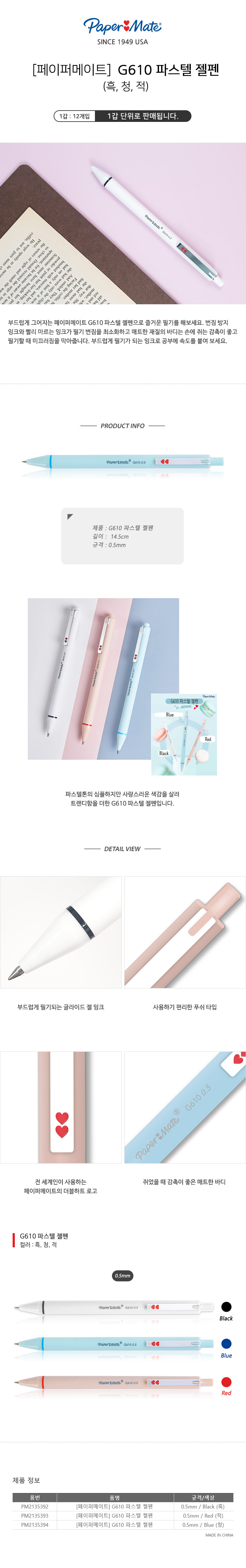 페이퍼메이트 G610 파스텔 젤펜 12개