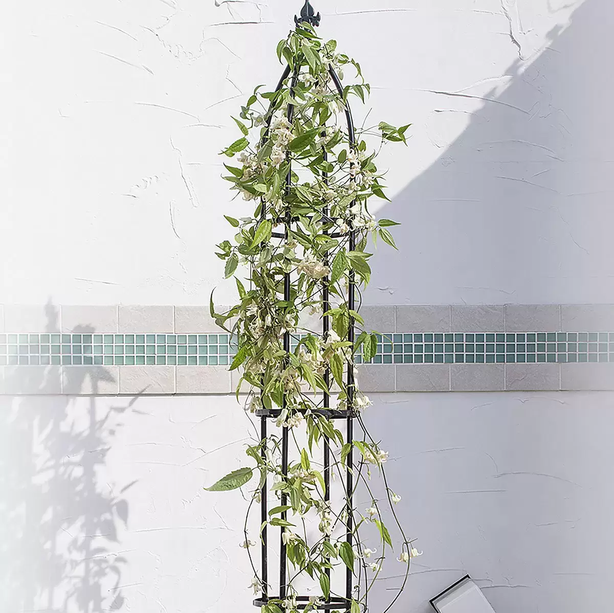 장미등 다양한 넝쿨식물들과 자연스럽게 어울리는 세련된 디자인과 색감으로 심심하고 무료한 내 정원을 한층 재미있게 꾸밀 수 있습니다. 지지대가 필요한 넝쿨식물을 위해 만들어진 오벨리스크 제품은 보다 쉽게 넝쿨식물을 키울 수 있게 해줍니다. 스틸 재질로 표면은 파우더 코팅으로 처리되어 쉽게 녹이 슬지 않습니다.