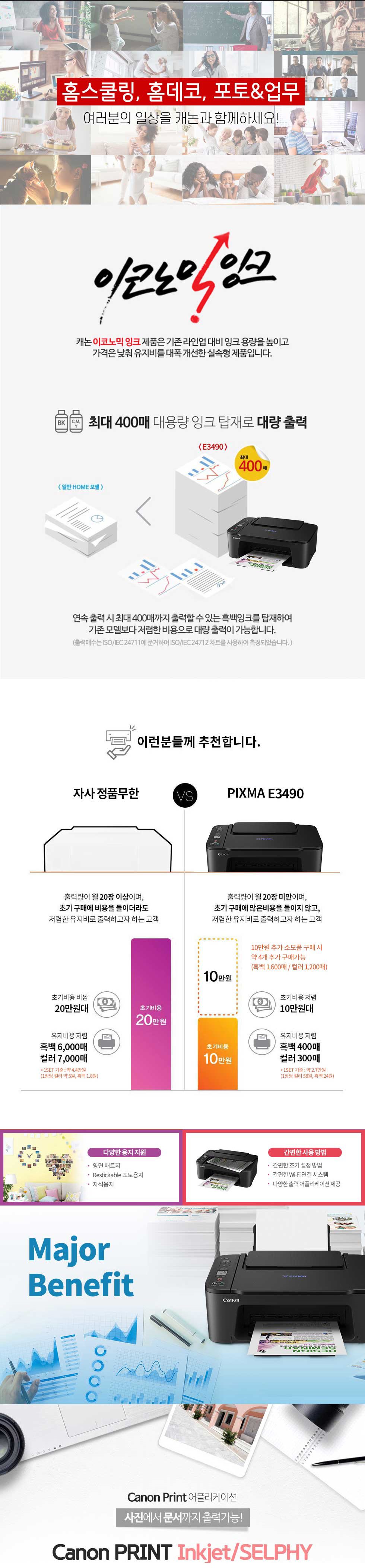 - 캐논 E3490 정품 무선 잉크젯 컬러 프린터기 (인쇄+복사+스캔+무선) 복합기