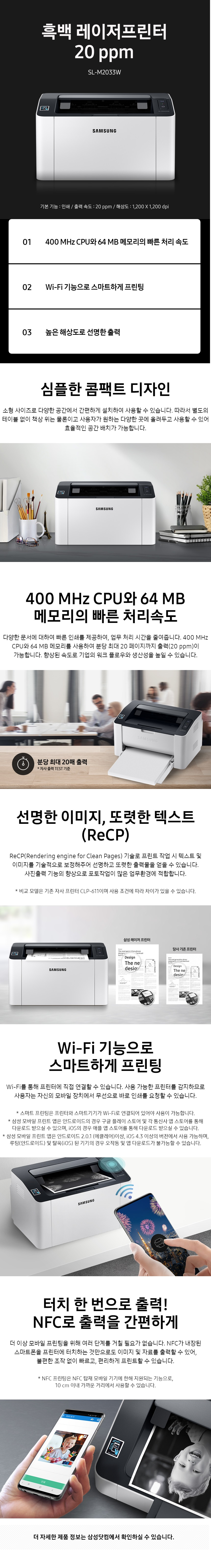 삼성전자 흑백 레이저 프린터 SL-M2033W