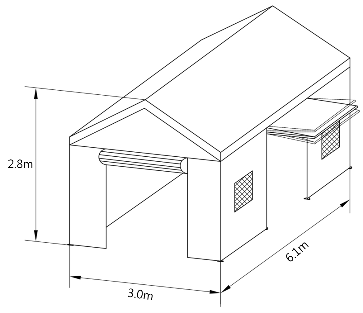 - 크기: 가로 6.1 x 세로 3.0 x 높이 2.8m