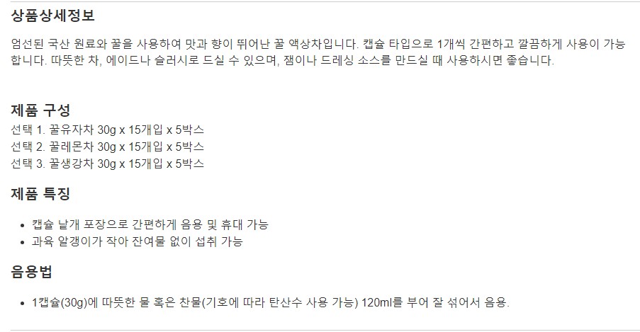 꽃샘 액상 캡슐차 30g x 15개입 x 5박스