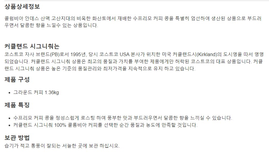 커클랜드 시그니춰 콜럼비아 그라운드 커피 x 2