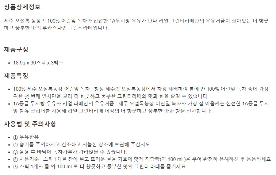 루카스나인 그린티 라떼 18.9g x 30스틱 x 3박스