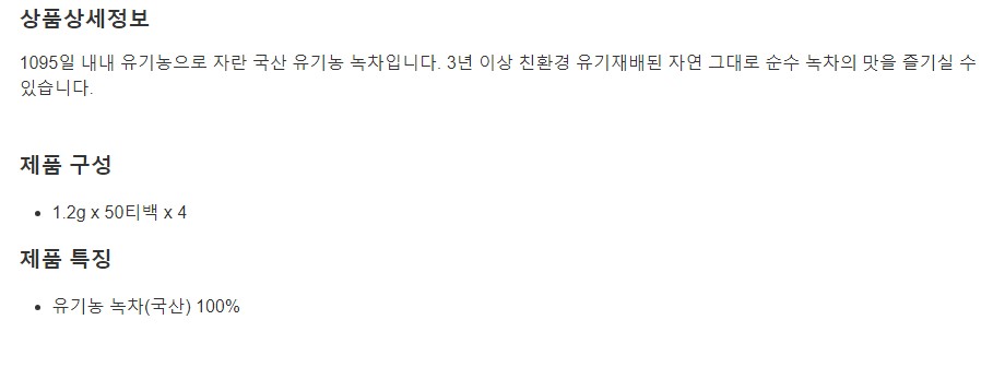 녹차원 유기농 순수녹차 1.2g x 50티백 x 4