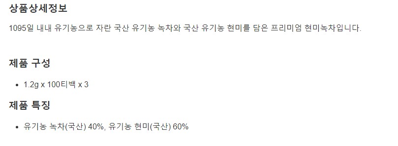 녹차원 유기농 현미녹차 1.2g x 100티백 x 3