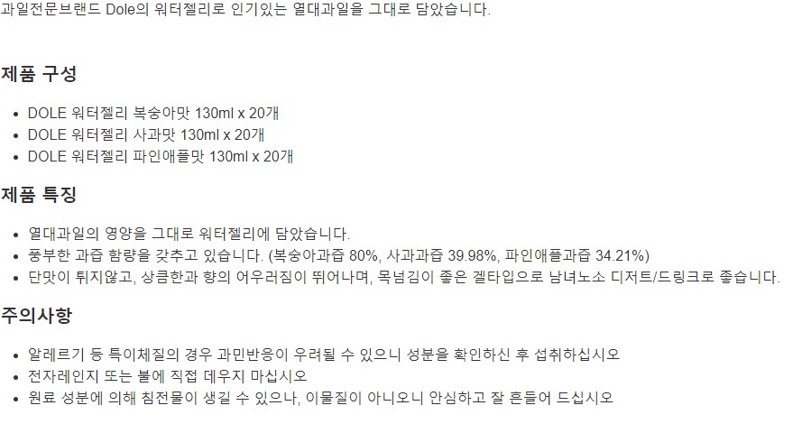 Dole 워터젤리 130ml x 20개