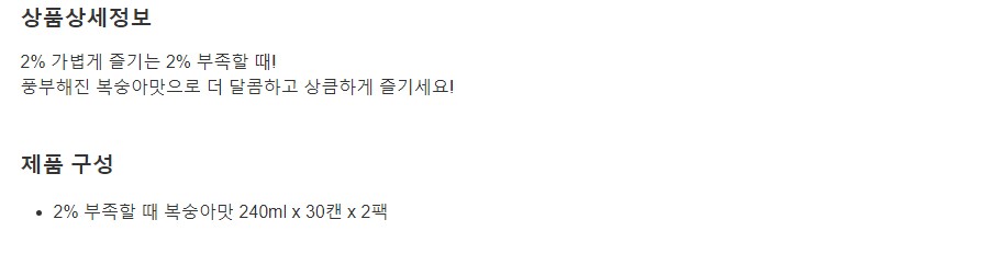 2% 부족할 때 복숭아맛 240ml x 30캔x 2팩
