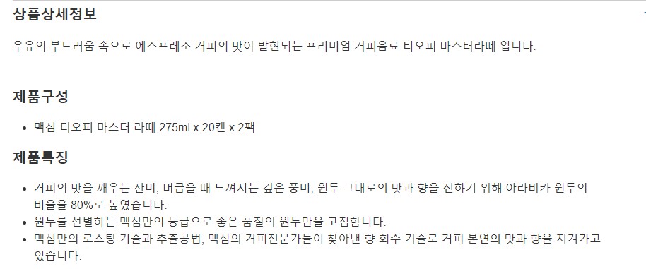 맥심 티오피 마스터 라떼 275ml x 20캔 x 2팩