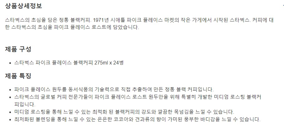 스타벅스 파이크 플레이스 블랙커피 275ml x 24병