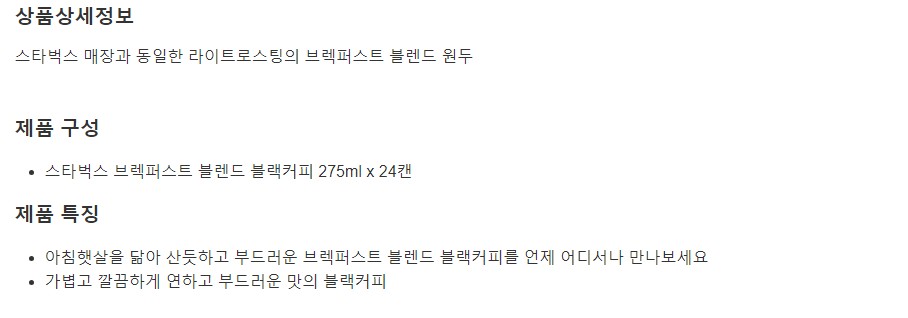 스타벅스브렉퍼스트블렌드블랙 275mlx 24병