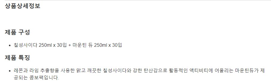 칠성사이다 250ml x 30 + 마운틴듀 250ml x 30 콤보팩