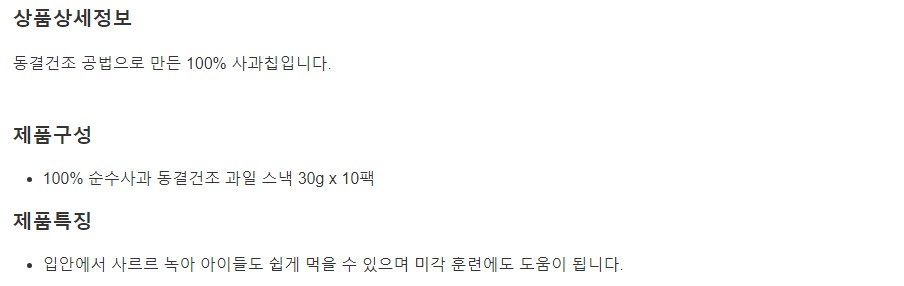 100% 순수사과 동결건조 과일 스낵 30g x 10팩