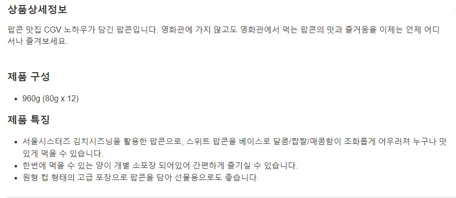 CGV 시그니처김치맛팝콘960g (80g x 12)