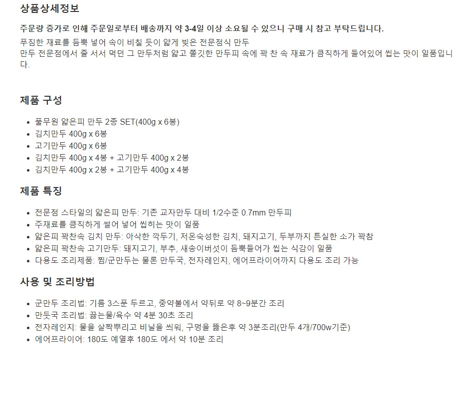 풀무원 얇은피 만두(김치/고기) 400g x 6봉