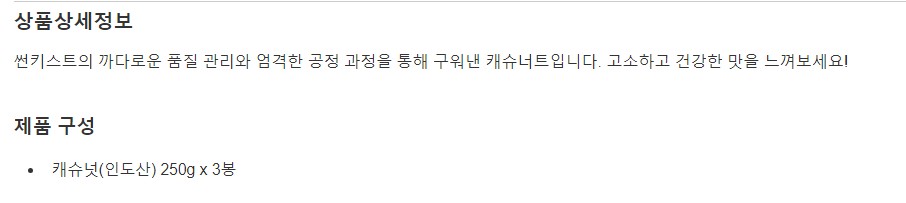 썬키스트 구운 캐슈넛 250g x 3봉