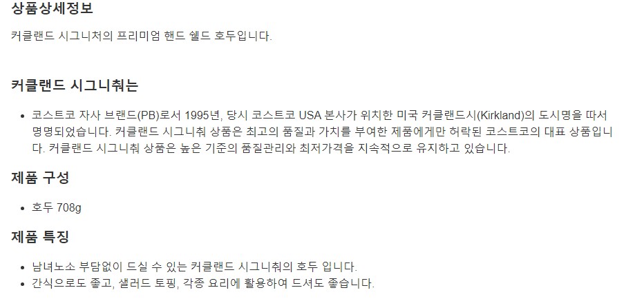 커클랜드 시그니춰 핸드 쉘드 호두 708g