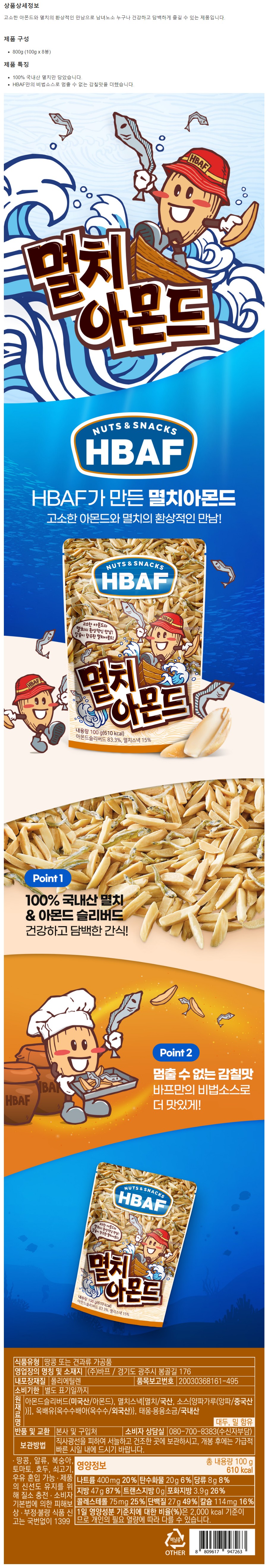 HBAF 멸치 아몬드 800g (100g x 8)