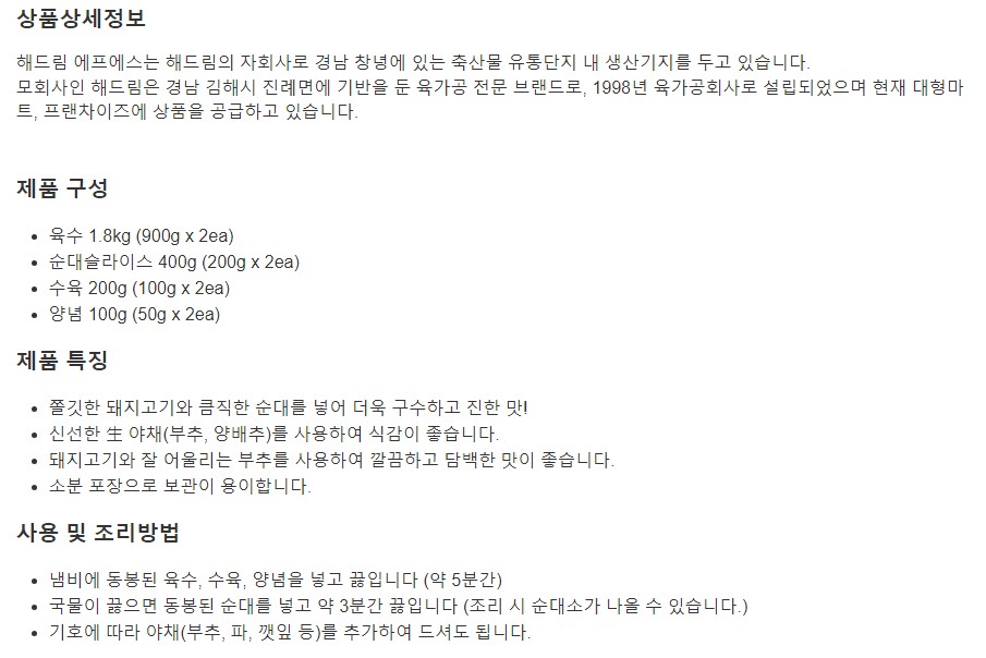 해드림 부추고기순댓국 2,500g