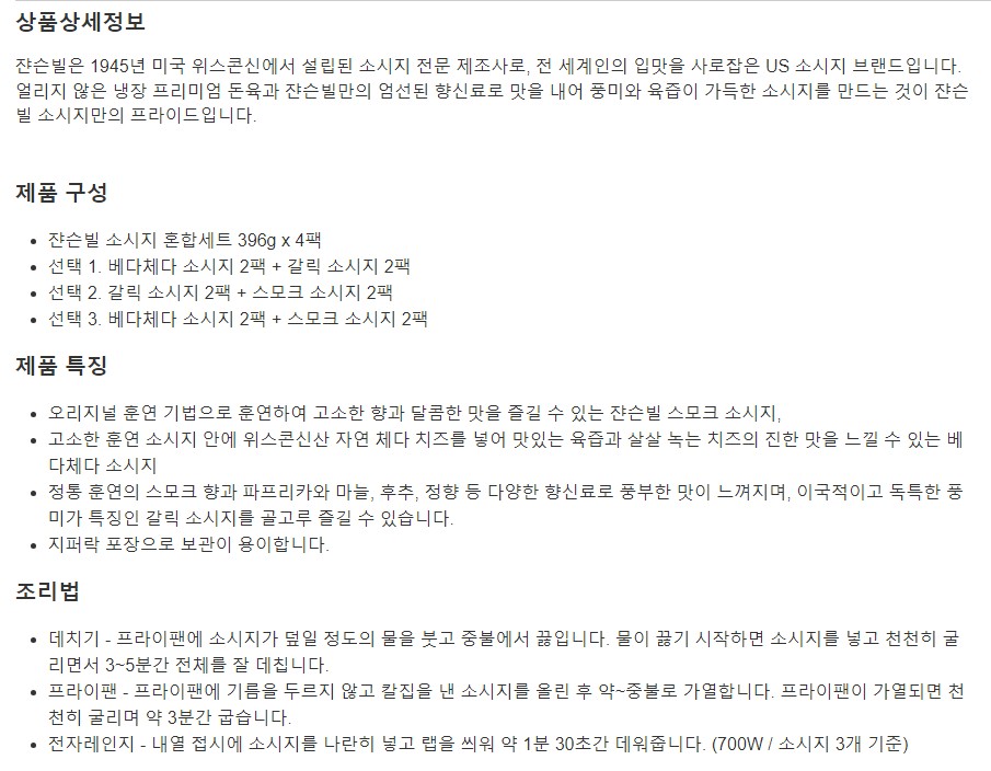 쟌슨빌 소시지 혼합세트 396g x 4 팩
