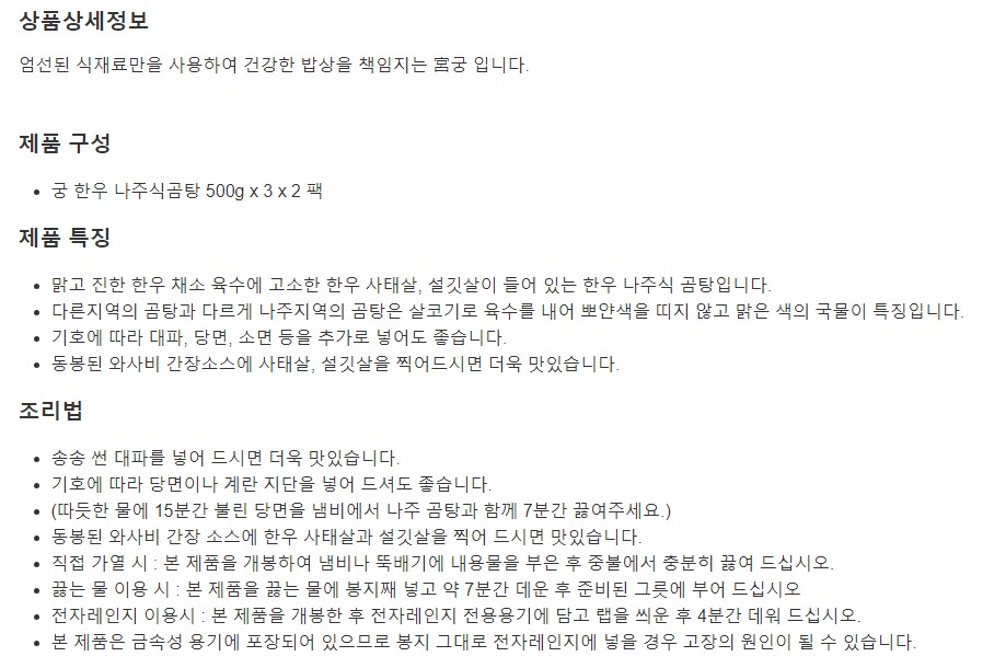 궁 한우 나주식곰탕 500g x 3 x 2팩