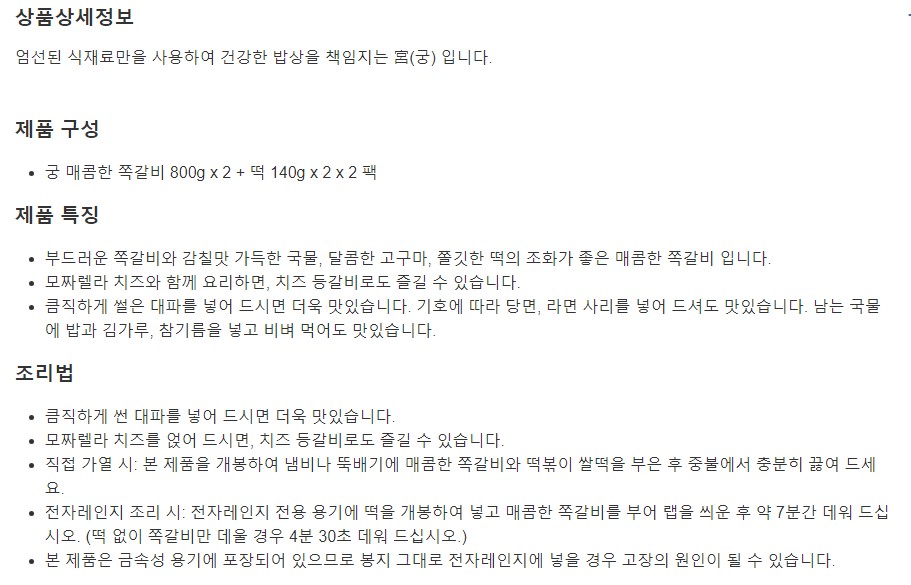 궁 매콤한 쪽갈비 800g x 2 + 떡 140g x 2 x 2팩