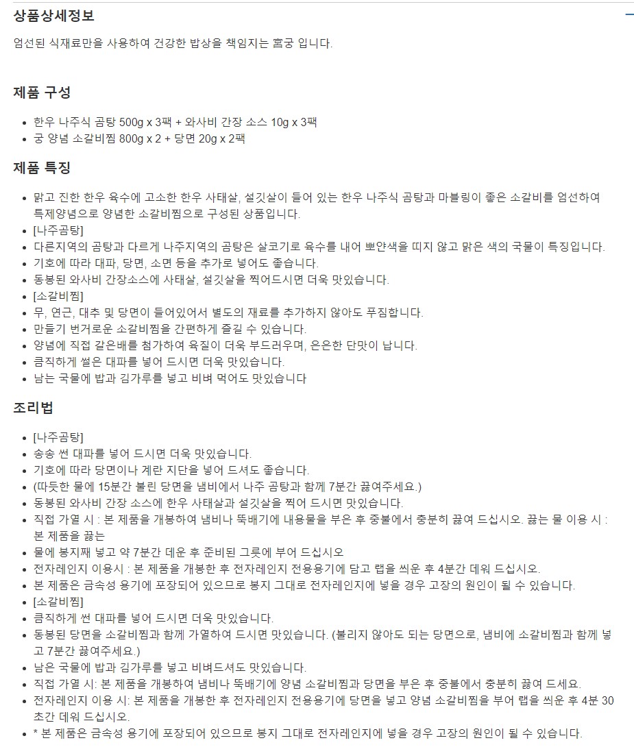 궁한우나주식곰탕500gx3 +소스+ 갈비찜800gx2 +당면