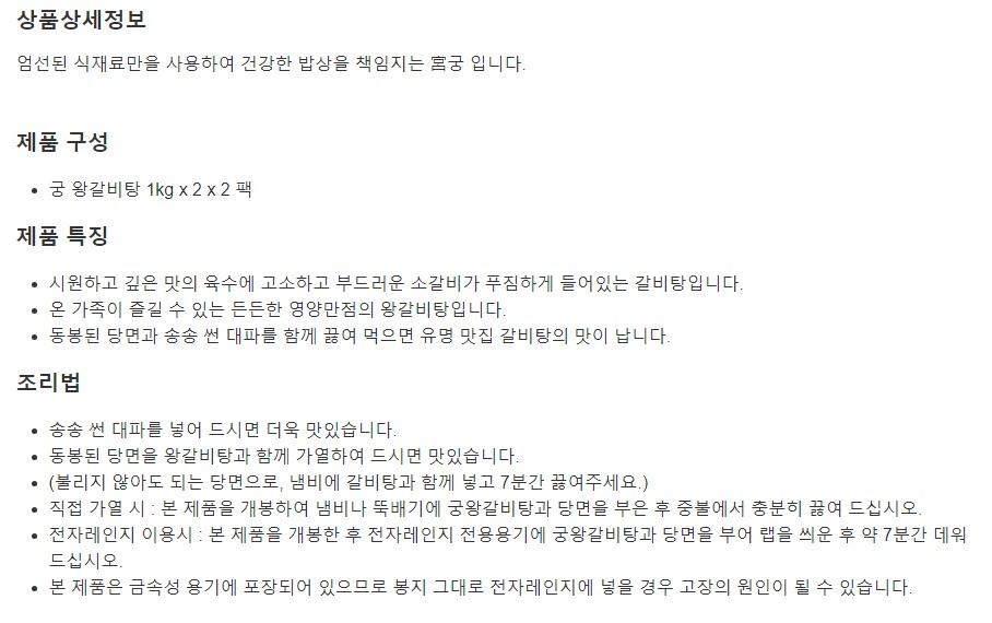 궁 왕갈비탕 1kg x 2 x 2팩