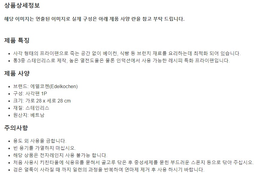 에델코첸 사각 스테인리스 브런치팬 28cm