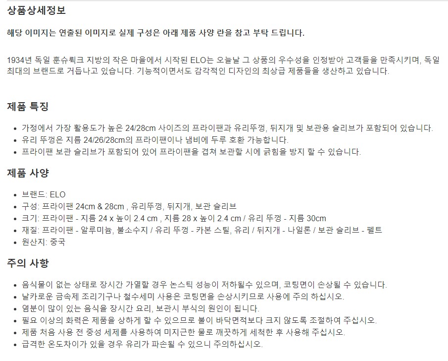 ELO 세라노블 프라이팬 세트 5P