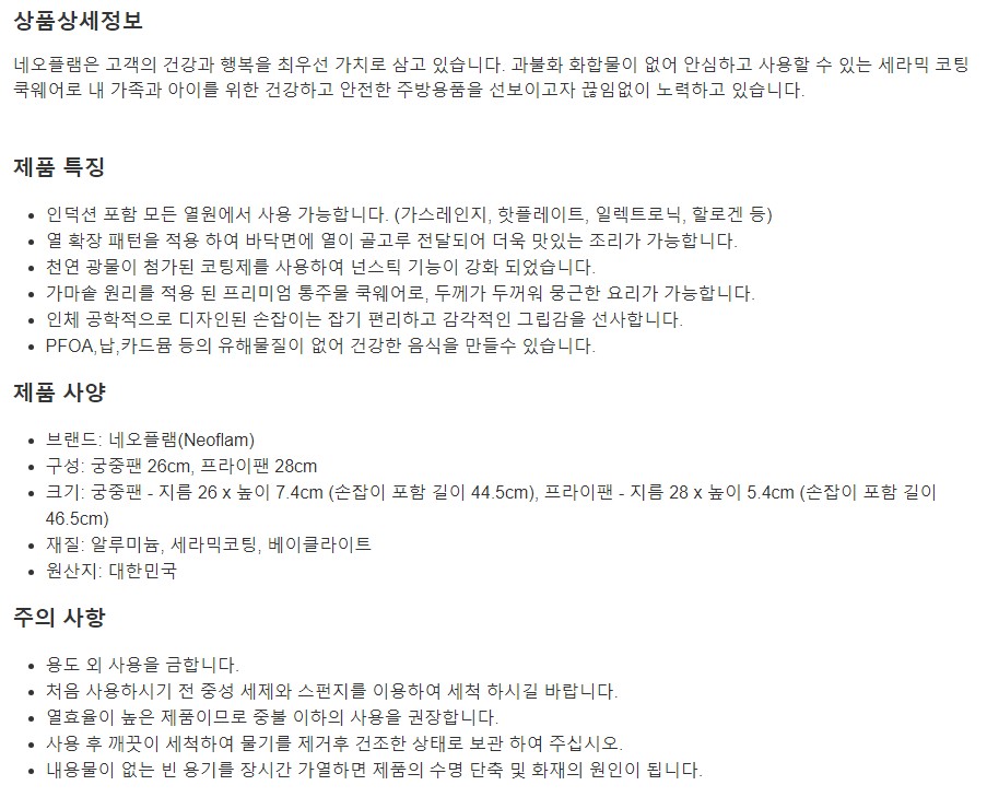 네오플램 레트로 IH 프라이팬 28cm & 웍26cm 세트