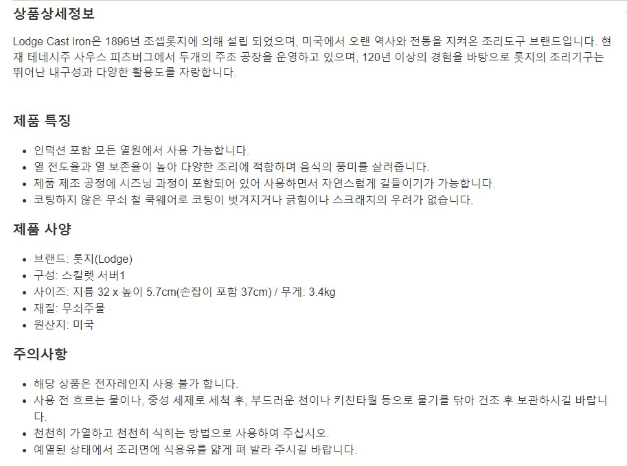 롯지 캐스트 아이언 스킬렛 서버 32cm