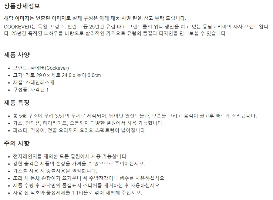 쿡에버 스테인리스 사각팬