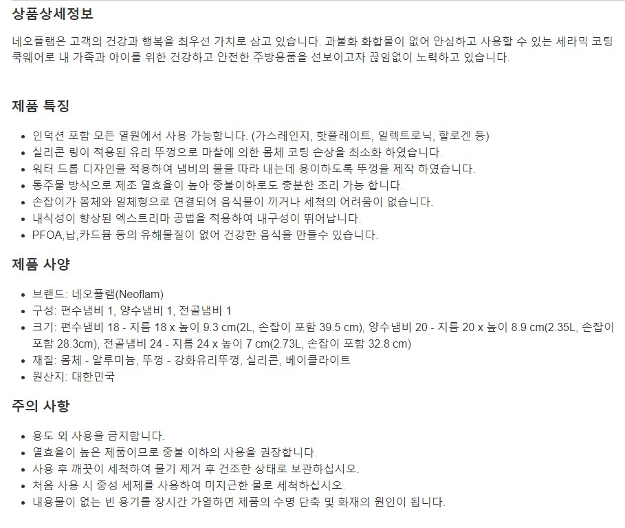 네오플램 뽀떼 IH 냄비 3종 세트