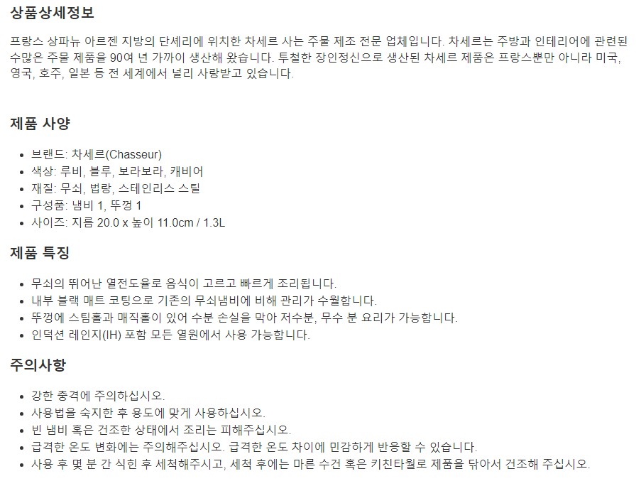 차세르 프리미엄 무쇠 전골냄비 20cm