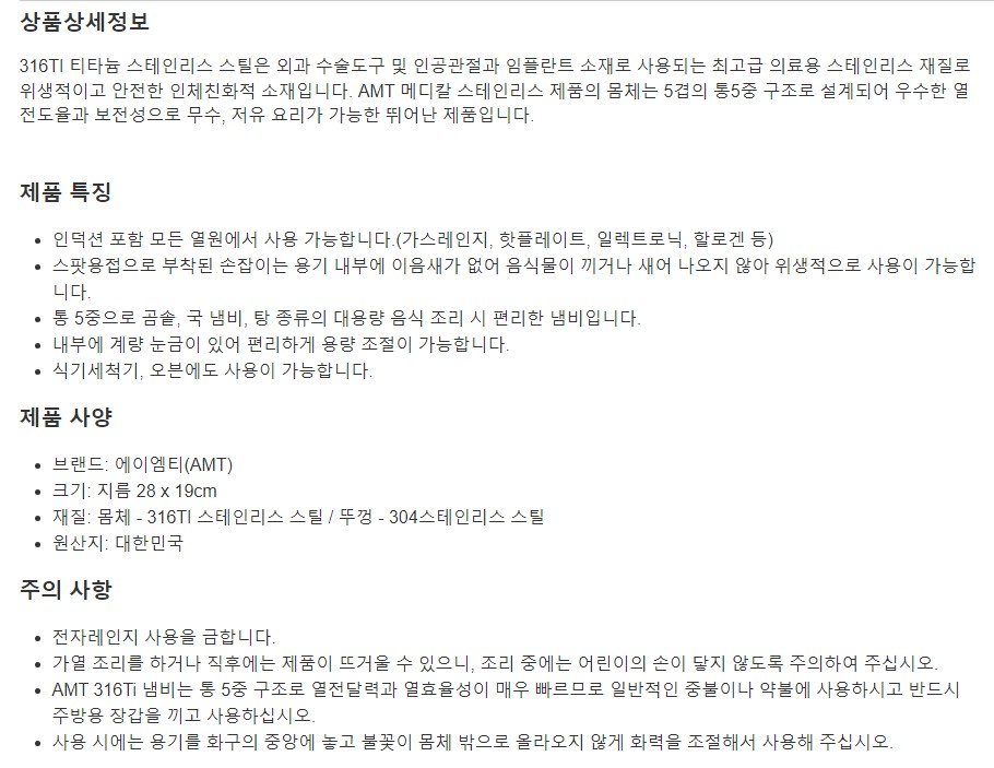 AMT 프로시리즈 양수 곰솥 28cm