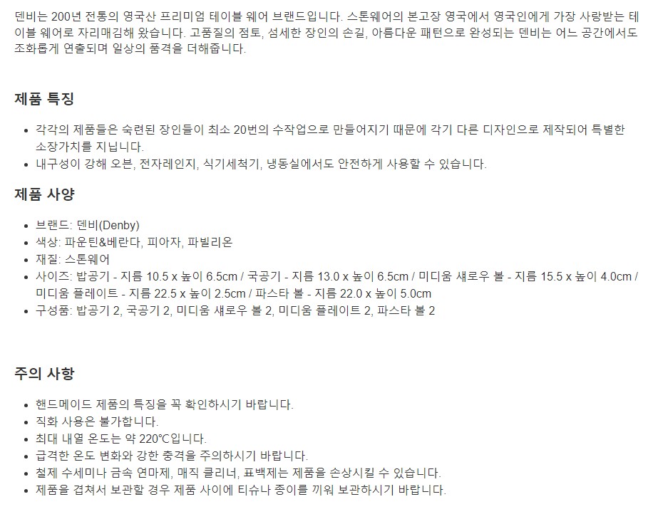 덴비 헤리티지 2인 한식기 세트 10P