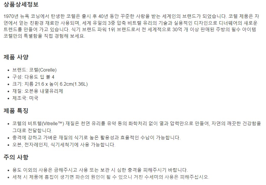 코렐 화이트 다용도 딥 볼 4P 세트