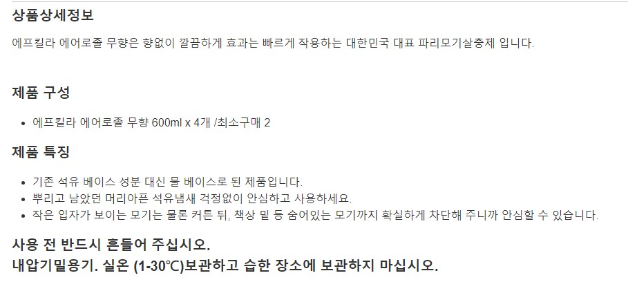 에프킬라 에어로졸 무향 600ml x 4 x 2