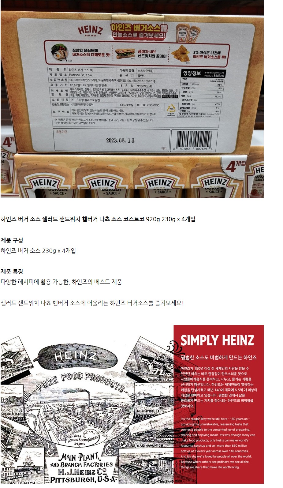 하인즈 버거 소스 230g x 4입