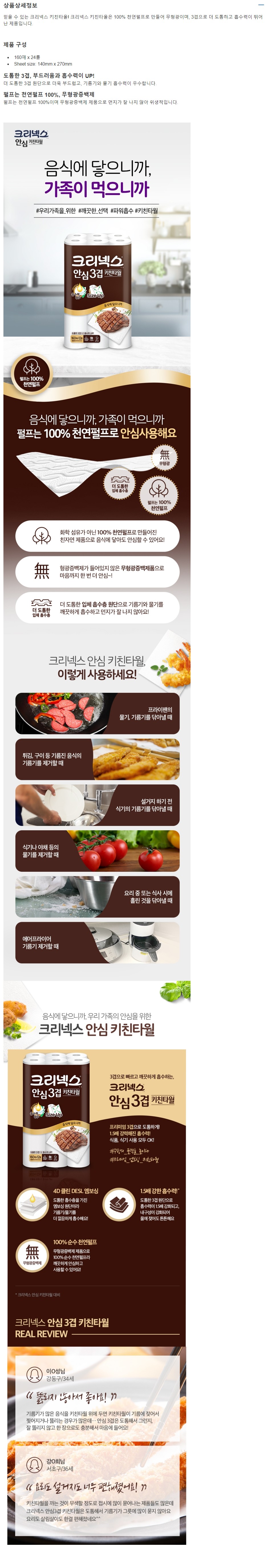 크리넥스 안심 3겹 키친타월 160매 x 12롤 x 2팩