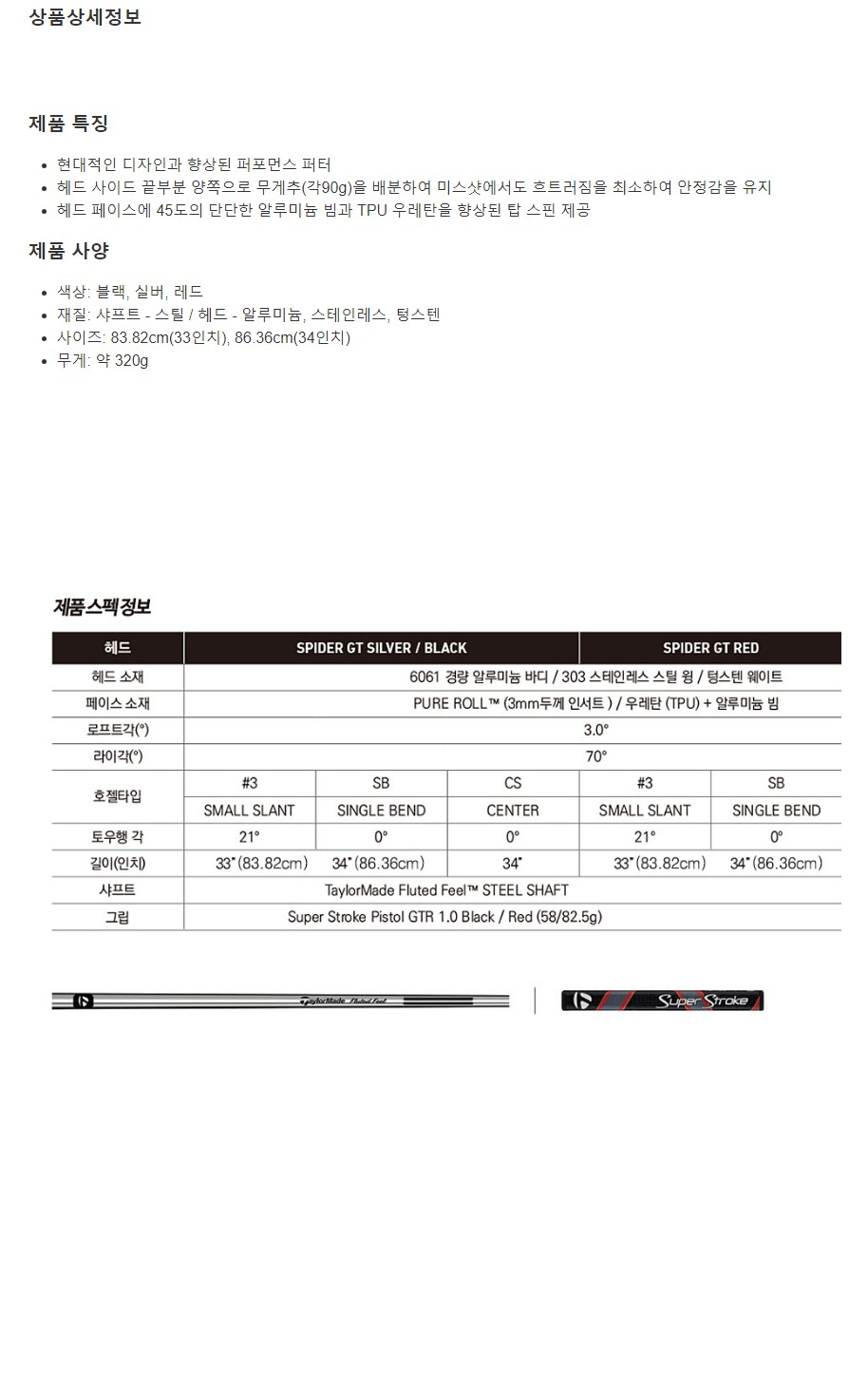 테일러메이드 스파이더 GT 싱글밴드 말렛 퍼터 - 블랙