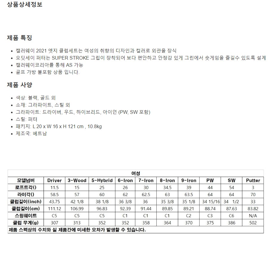 캘러웨이 Edge 여성 골프클럽 10-piece 세트