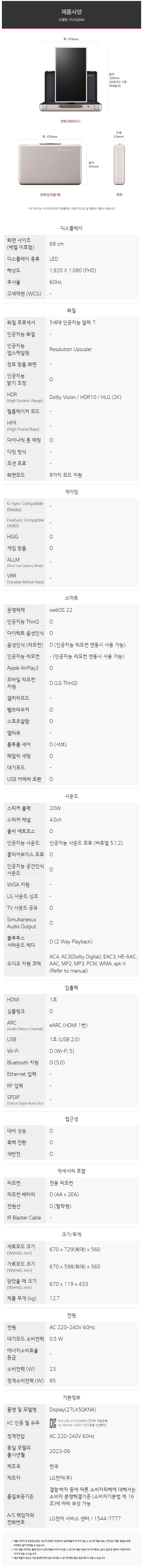 엘지 스탠바이미 Go 27LX5QKNA 68cm (27) LG StanbyME Go TV 27LX5QKNA 68cm (27)