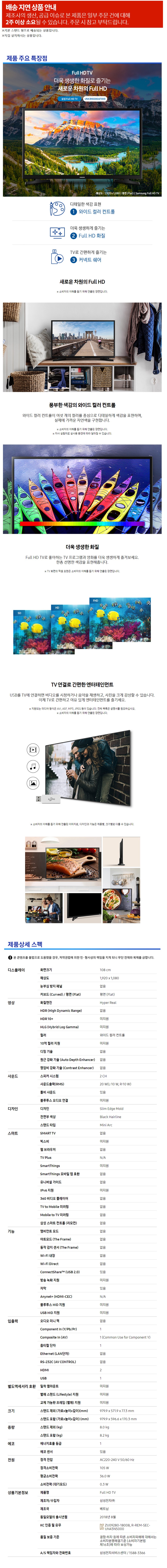 삼성 FHD TV UN43N5000AF-S 108cm (43) Samsung FHD TV UN43N5000AF-S 108cm (43)