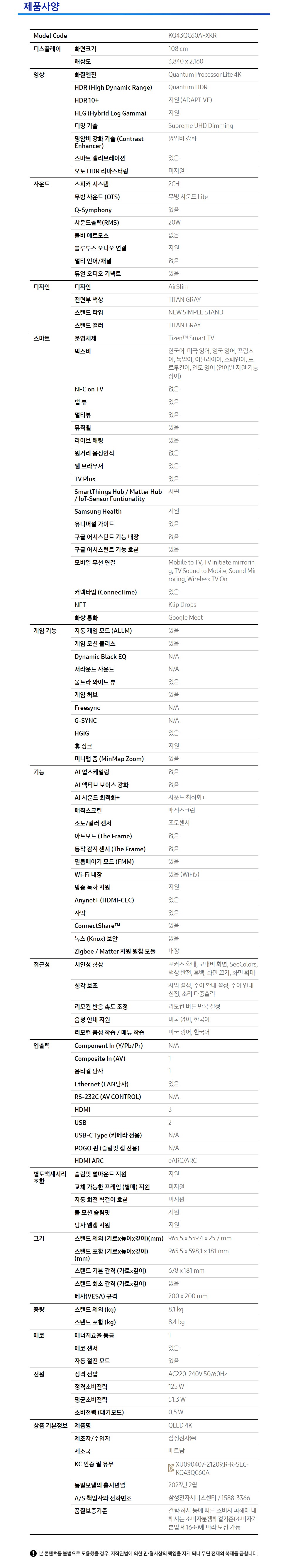 삼성 QLED TV KQ43QC60AFXKR 108cm (43) Samsung QLED TV KQ43QC60AFXKR 108cm (43)