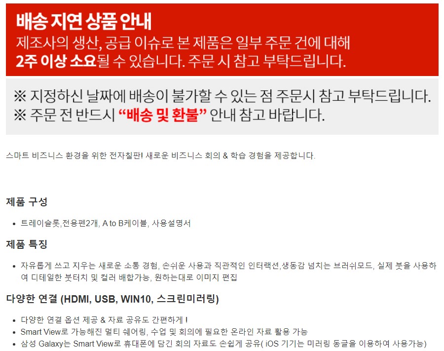 삼성 전자칠판 플립2 139cm (55) 벽걸이형 SAMSUNG Smart Board LH55WMRWBGCXKR-Wall Mount