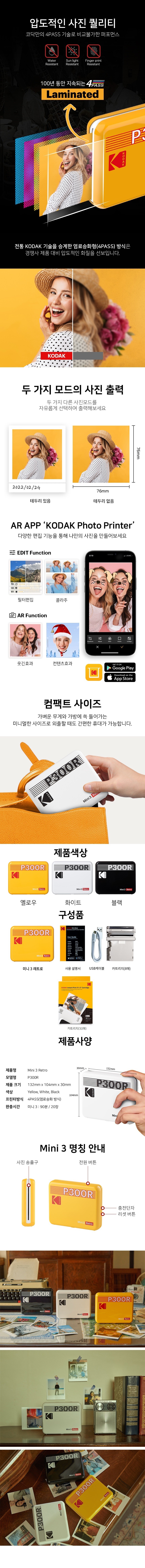 코닥 미니3 포토 프린터&카트리지 30매 세트 Kodak Photo Printer w/ Papers